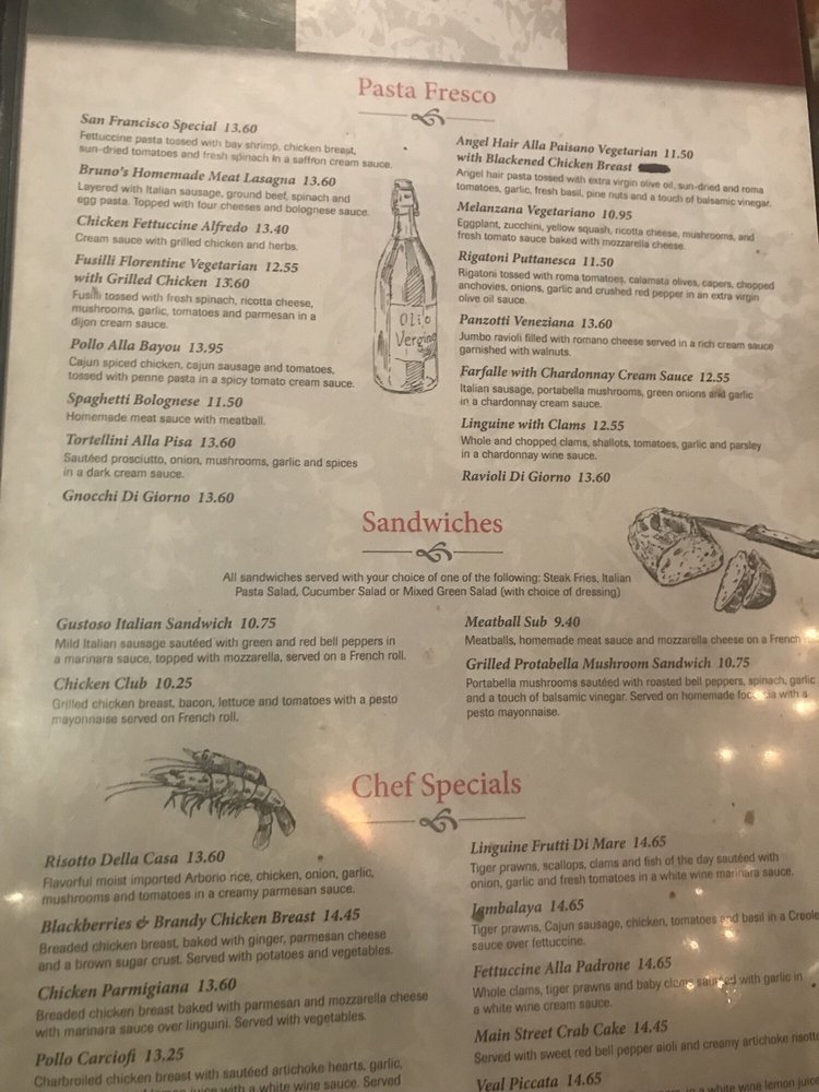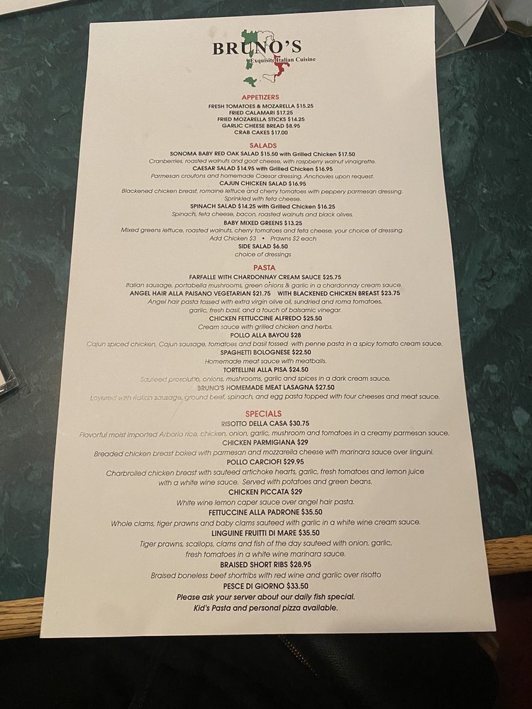Bruno’s Italian Cuisine offers a tantalizing menu of classic Italian dishes and unique chef specials. The Chef Specials include a mouth-watering 12oz Veal Chop cooked to perfection in a white wine lemon juice sauce, and the Blackberries and Brandy Chicken Breast with a brown sugar crust. For starters, indulge in Coconut Prawns with a pineapple cherry glaze or the Fresh Tomatoes and Mozzarella salad. The ambiance is a perfect mix of classy and casual, with outdoor seating and a full bar for a relaxed dining experience. The restaurant is family-friendly, making it a great choice for lunch or dinner. Don't miss out on Bruno’s Italian Cuisine in Livermore, CA for a taste of authentic Italian flavors.